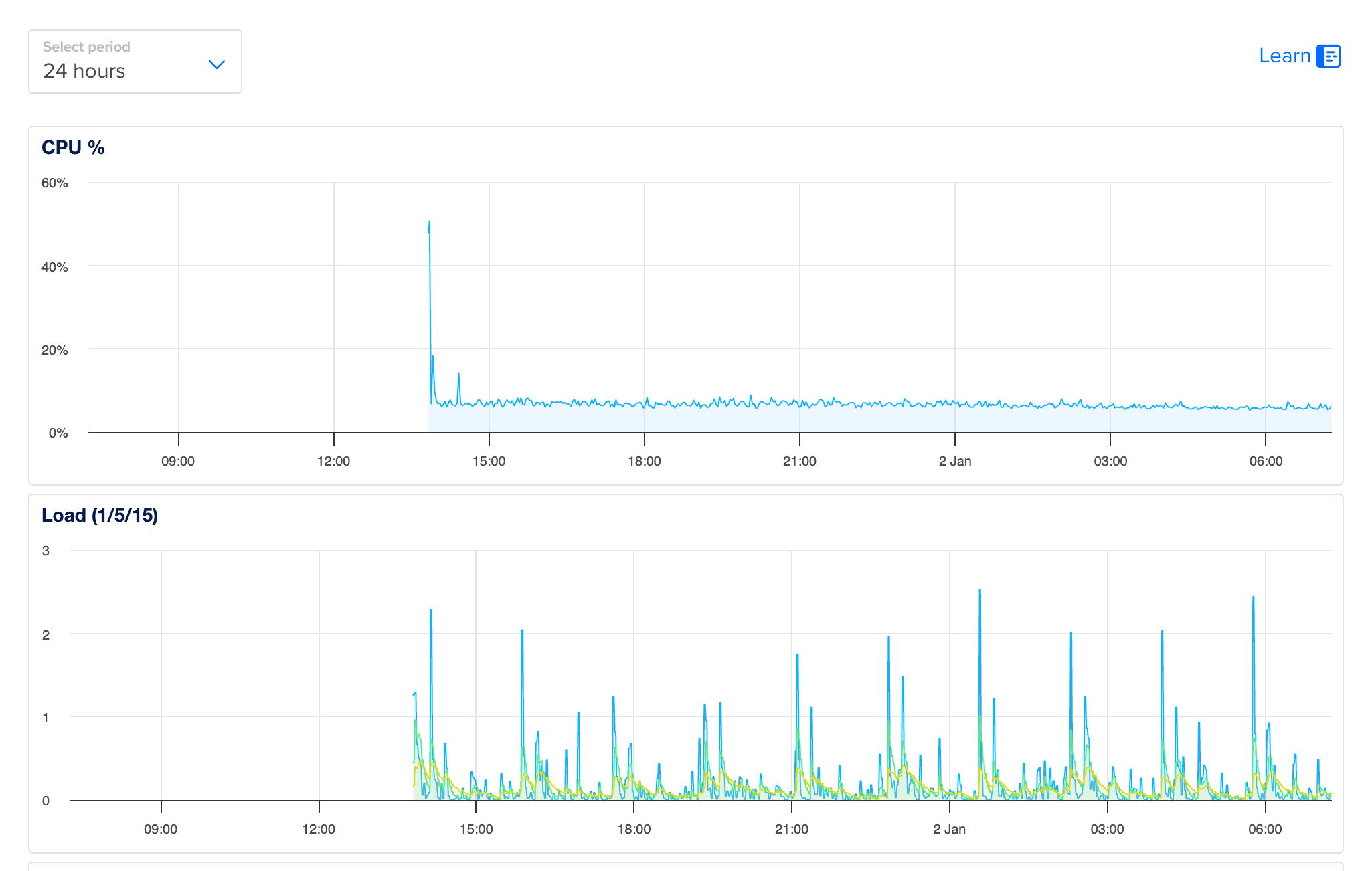 진짜 확인해보니 문제가 있긴 하더만. 네트워크 요청과 별개로 최근 2주간 CPU 100% 찍혀있는 게 엄청 많았다.